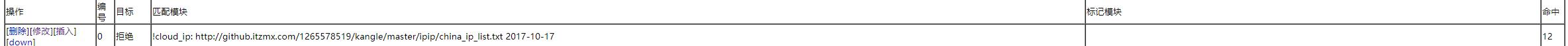 注:测试这模块好像有点问题,只能识别到1.0.1.0/24第一行?下面的竟然都匹配不到了。自己改成了|分割,直接一行都识别不出了。等BUG修复更新吧。或者用srsc把所有ip写进去吧,测试可用,这样就是数据库要手动去更新。