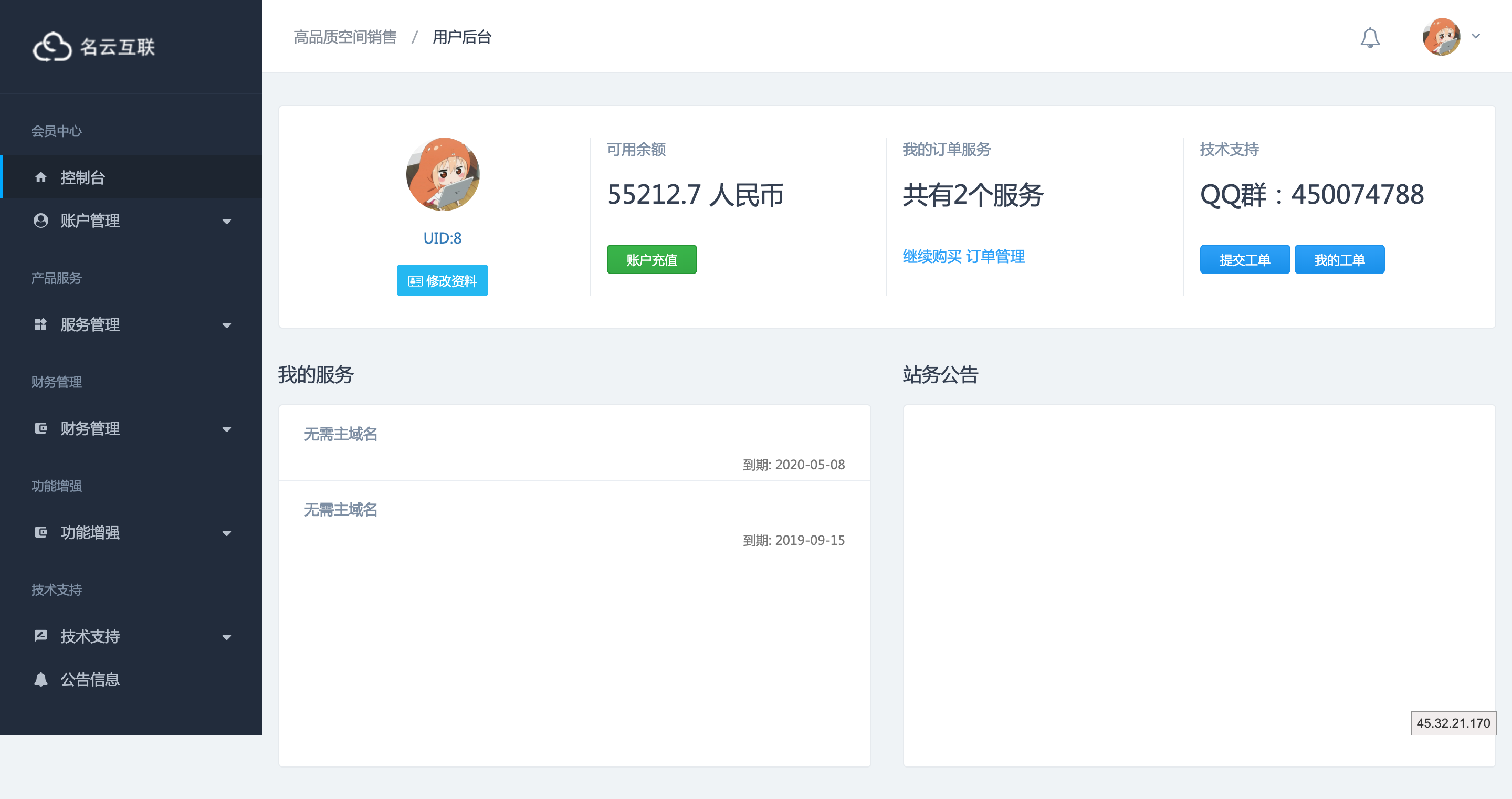 重构了个人中心以及其它可被修改插件展示样式,基本覆盖了全部的页面(市面上的模板公告、工单基本不全)