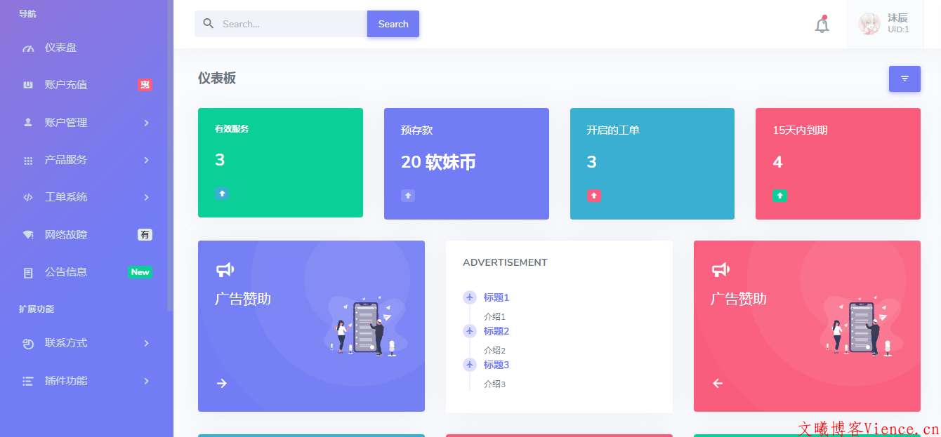 框架实现的,独特的设计和布局,华丽的配色,使人简洁明了,多种功能,多种设置,支持主页显示公告,并有作者原创开发