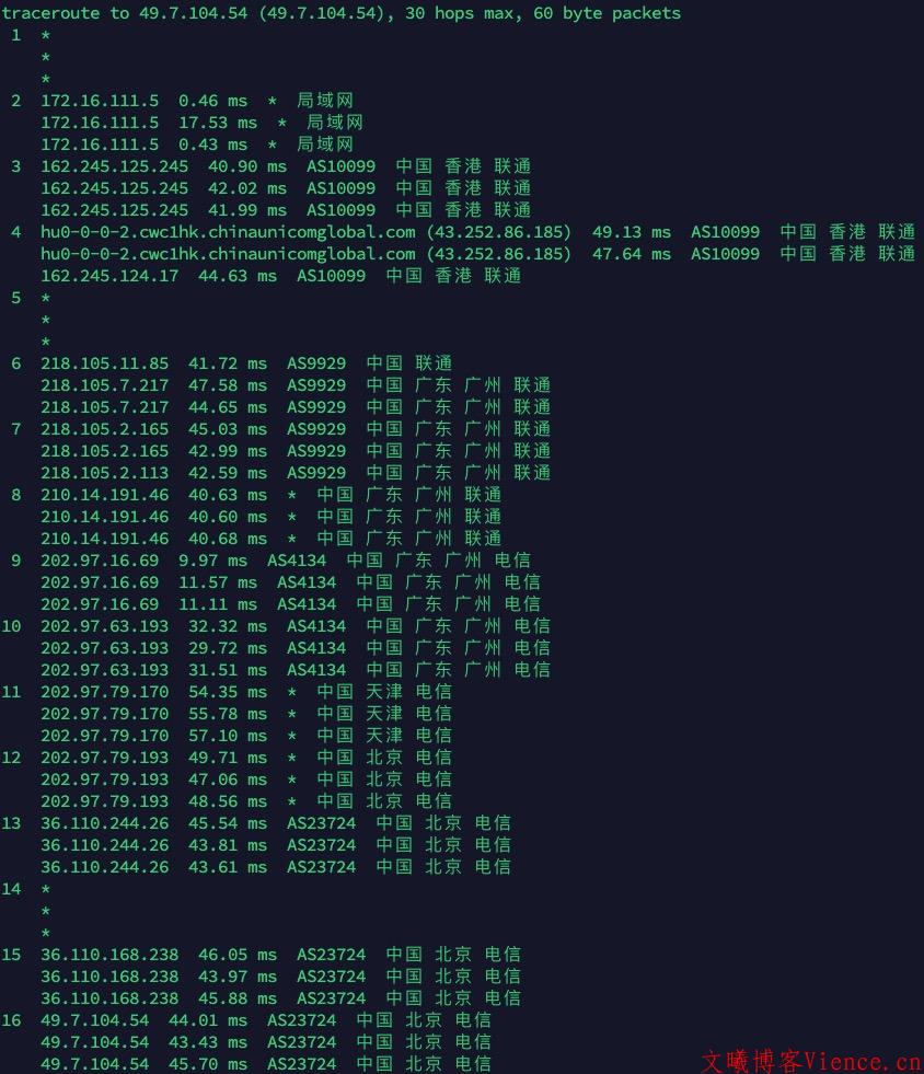 路由追踪分去程追踪与返程追踪,即,测试你本地访问vps时,数据走的路由;和你的VPS向你本地网络发送数据,走的路由。