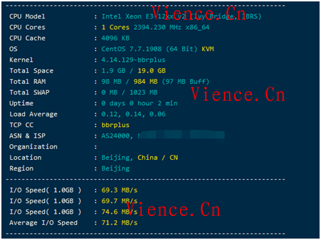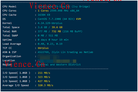 香港沙田A区测试基本信息IO速度等