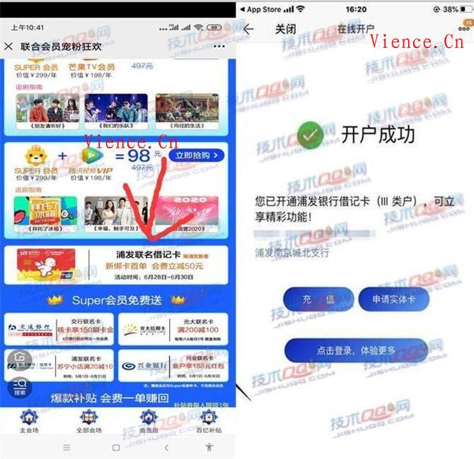 2、点击浦发联名借记卡 进入完成开户 绑定任意一张银行卡 开户成功后充值100元进去(支付完可以提现出来)