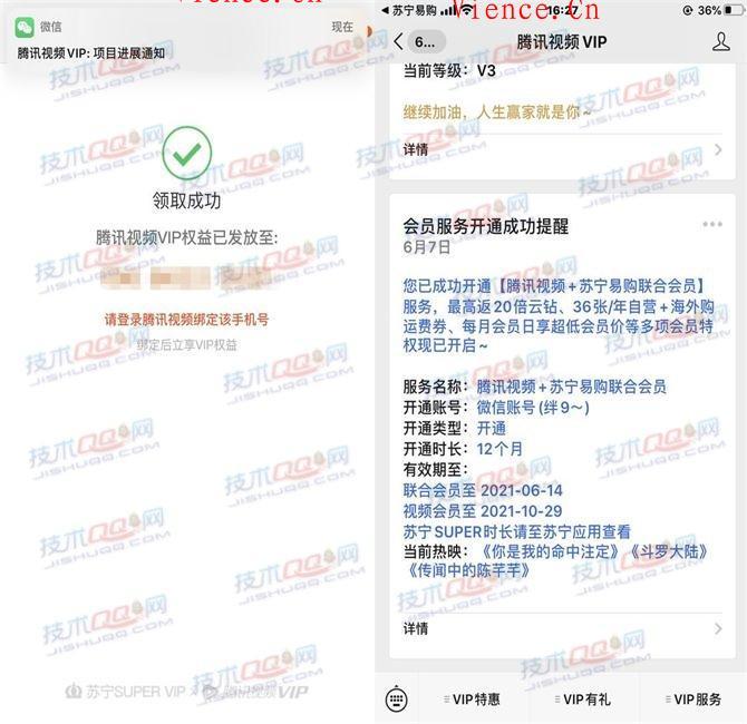 5、12个月腾讯视频会员秒到账 也可以在(苏宁易购APP-我的易购-点SUPER-待领取腾讯视频)