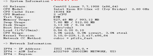 美国B区512M内存 1核CPU 20G+20G磁盘 800G流量 25Mbps带宽 原价15/月 现价10.5元