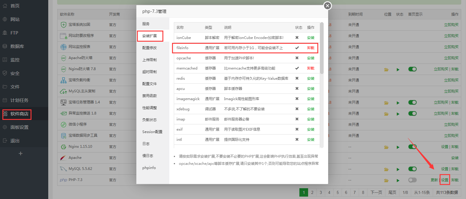 去kangle 板面把PHP 换到71.13 在去安装界面查看 已经扩展