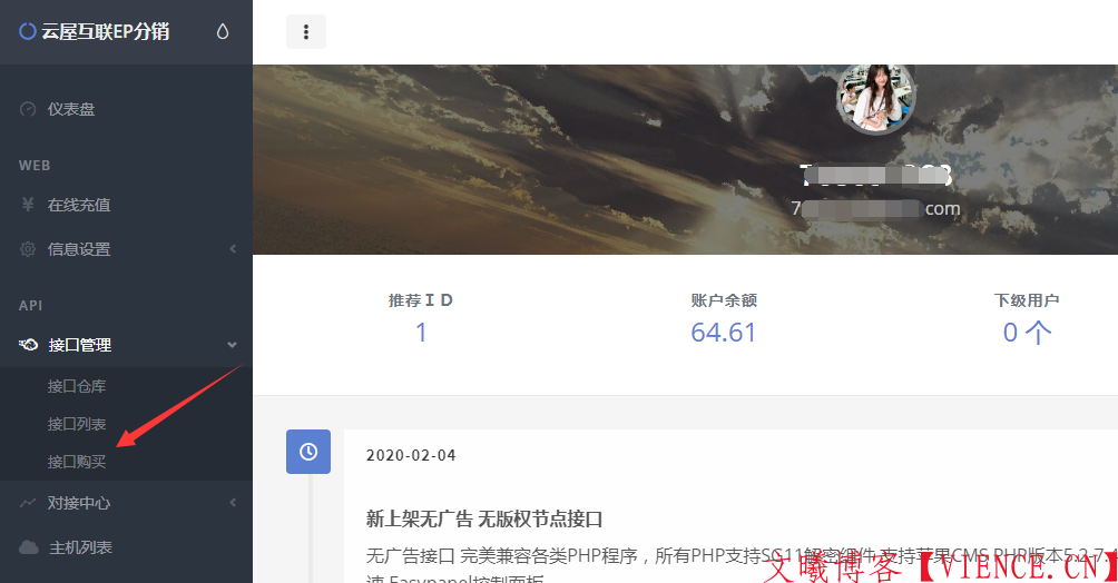 登录来到EP分销首页 点击 接口购买 获取接口对接权限及对接信息