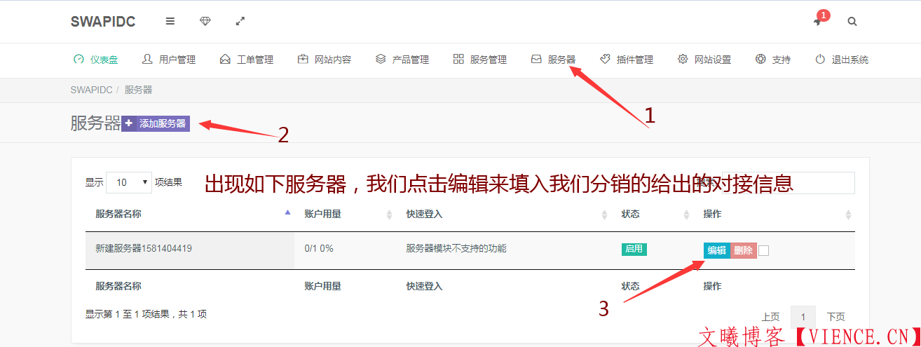 现在来到swapidc的后台,点击服务器来对接