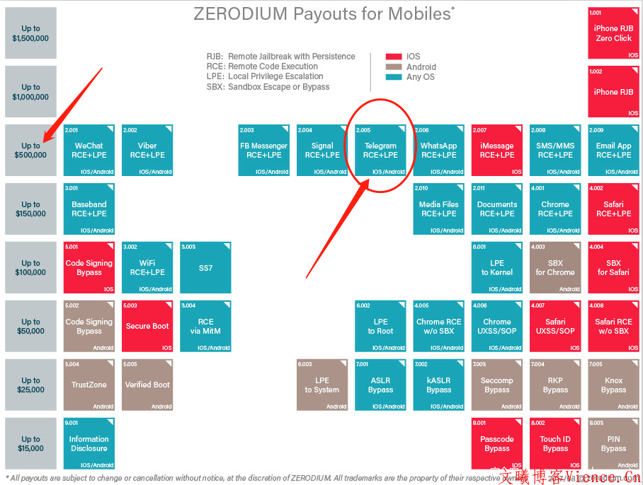 不仅如此漏洞收购平台Zerodium 对Telegram的漏洞还开出了最高 50 万美元的报价,Telegram的安全程度可见一斑。