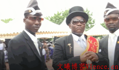 在不少最近刷屏的视频中,这 7 位黑人老哥横空出世,他们头戴礼帽,身穿黑色西服,黑色墨镜搭配迷之微笑,抬着一具棺材欢乐起舞。