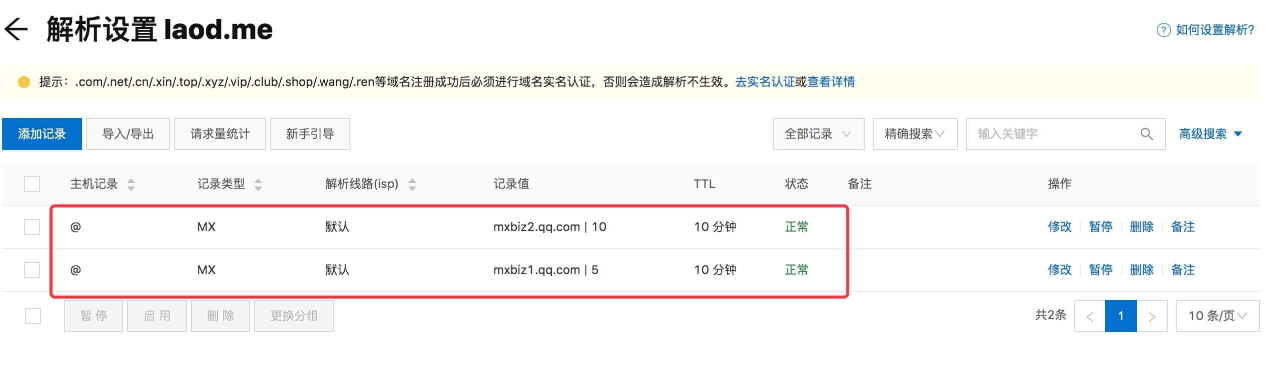 具体就是cn一级域名「laod.cn是一级域名,而带www的www.laod.cn是二级域名」用作博客域名,又用了CDN服务,导致域名邮箱无法解析。