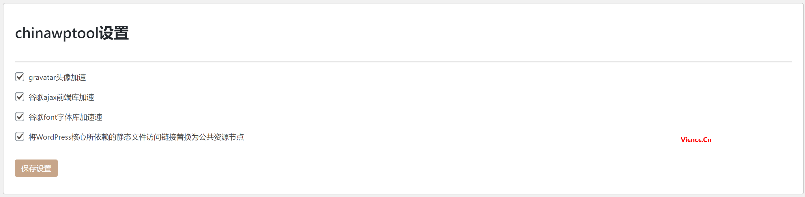 默认的wp-china-yes虽然很小,但是有400多行代码,四个加速就需要这么多,我觉得太过于繁杂了。就精简了一个,起初保留人性化设置,有80多行代码,缩小五倍,设置页面如图。 但也果断舍弃,代码也比较简单,不要哪个加速注释就行,要啥设置,哈哈,再精简,只留核心代码10几行,连注释21行,与原版相...