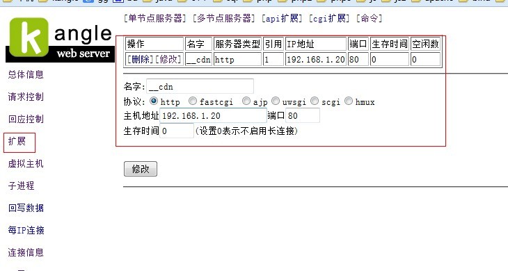 kangle做泛域名CDN,不需要一个一个添加域名的方法。批量做IP转发 例如国内服务器上的域名 全部要走CDN 目的是绕开备案.想法是 架设一个香港机器做CDN代理 只要让客户解析到这个IP上 就全部转向到国内... 一个域名一个域名的设置 太累了啊答可以的。你可以在扩展那里增加一个单节点服务器(后端服务器)再在请求控制那里将目录改为添加的单节点服务器,这样所以的请求都...