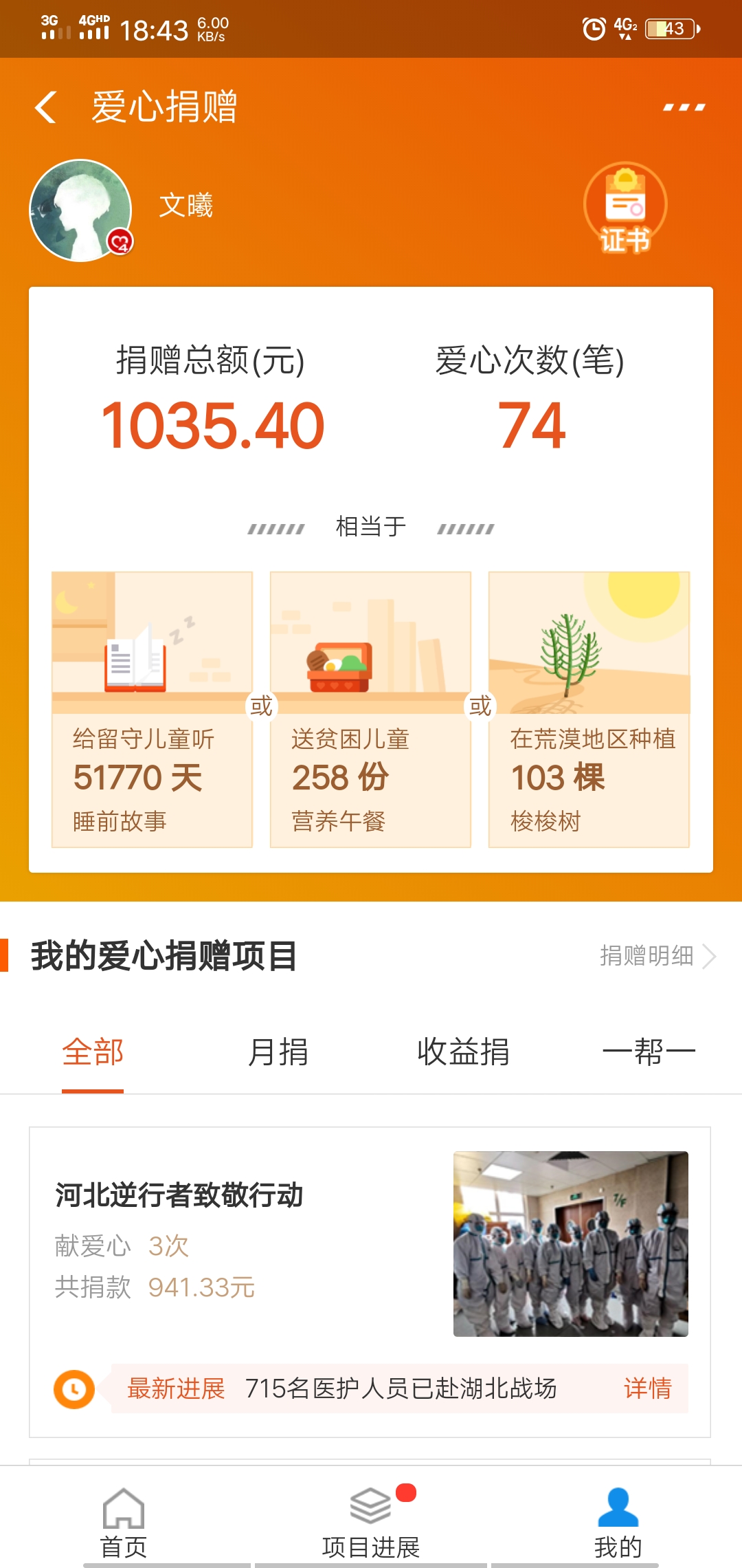 您们为武汉捐款了多少元呢!武汉加油!中国加油! 这次的疫情牵动了全国人民的心,每一天都有许多糟心事出现,许多网友都说,每天的心情都是在感动跟愤恨之间波动。其实不管如何,我们都要相信这个世界还是充满了善良。文曦渣渣也在支持河北救援队!!博主开始犹豫不决 最后武汉捐款都已经结束最后捐的河北逆行者公益了虽然钱不多,但这是我自己的劳动所得,代表了我的一份...