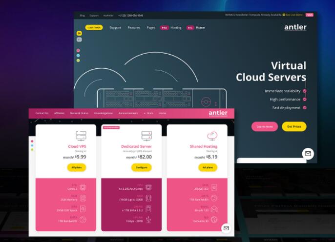whmcs模板-ANTLER V2.0.7主机皮服务器托管模板附带whmcs购物车模板和HTML ANTLER V2.0.7是一种响应式高级模板。基于Bootstrap框架,使用最新的HTML5和CSS3技术开发。带有40多个强大的页面模板,以及35多个自定义的短代码元素,这些元素特别参考了专用的“专用服务器和域过滤器” –动态切换价格–并根据您的需求定制服务器。压缩包配料表:食用说明文档一份;...